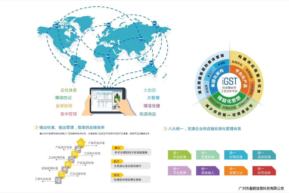通过k8凯发iGST标准化协同管理平台,特步供应链管理部门协调内部外部信息,让供应链的每一个参与者都能清晰了解并掌握生产工艺、品质要求、工艺流程、作业方法、作业时间、作业成本、生产计划、订单负荷、人机需求等标准化数据、从而达到统一标准、统一规范化的管理。